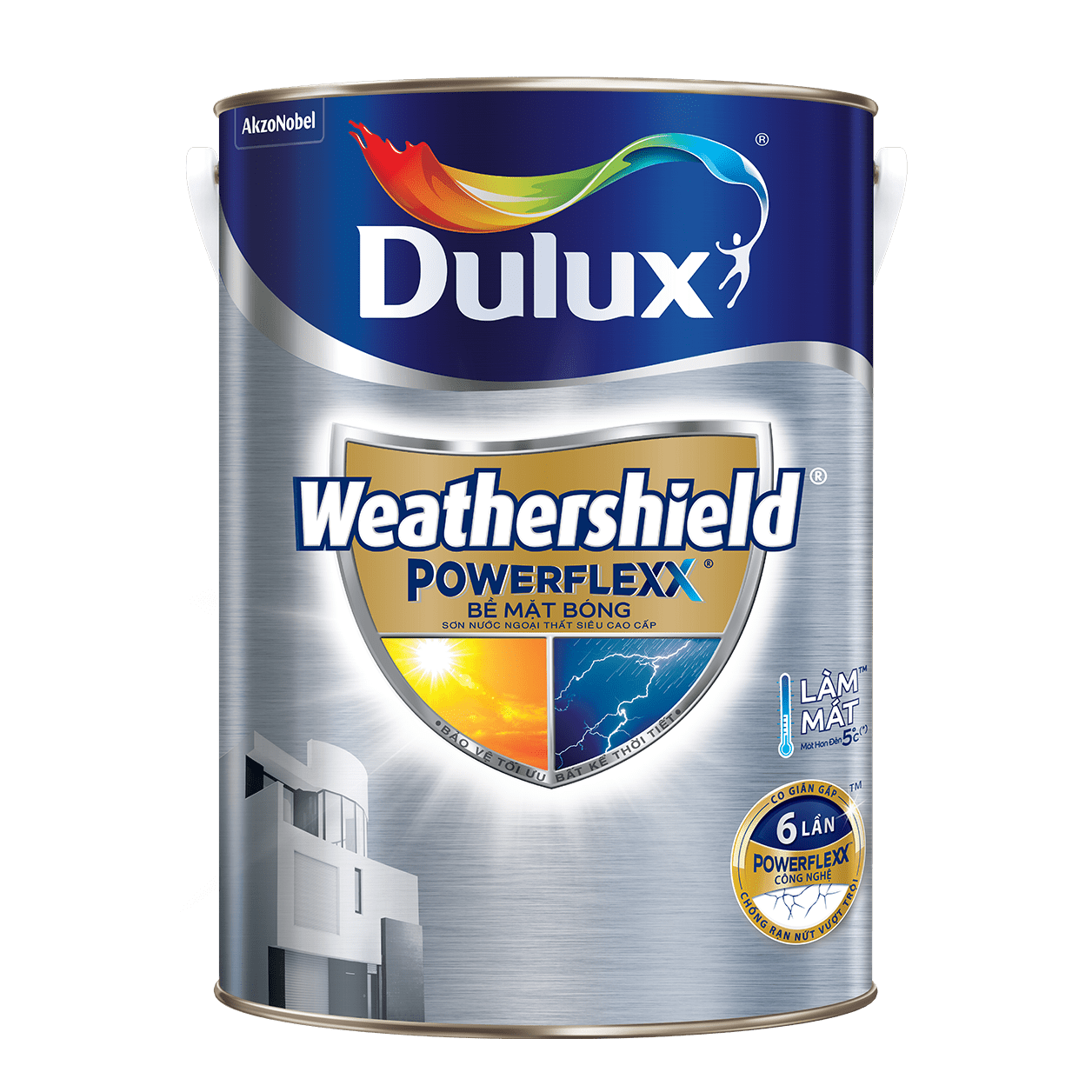Dulux Weathershield Powerflexx là sơn ngoại thất siêu cao cấp mang đến sự bảo vệ tối ưu và giữ cho ngôi nhà của bạn luôn bền đẹp như mới. Công nghệ Powerflexx độc đáo giúp tăng độ co giãn của màng sơn lên tới 6 lần so với các loại sơn ngoại thất cao cấp thông thường. Nhờ đó, có thể che kín những vết rạn nứt nhỏ, giúp bảo vệ tường & chống thấm tốt hơn.